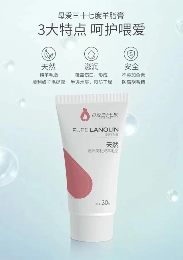 羊脂膏:羊脂膏是一種天然的動(dòng)物脂肪,提取自澳洲美利奴羊毛,羊毛的含脂率高達12%-14%,純天然的產(chǎn)品,不僅可以用來(lái)保護寶寶臀部的皮膚屏障隔離糞便刺激,而且針對乳頭疼痛,寶寶濕疹也可以使用。